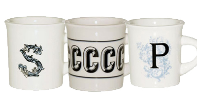 Wieder einmal ein typografisches Produkt-Design, zwar nicht so der Brüller, aber dennoch eine schöne Sache. Besonders jetzt in der Vorweihnachtszeit, kann man das eine oder andere schöne Geschenk dieser Art finden. Somit habe ich im Blog von Hoefler & Frere-Jones den Beitrag Typographic Gifts for Designers, Part 1 entdeckt wo man unter anderem folgende hübsche Tassen erwerben kann: